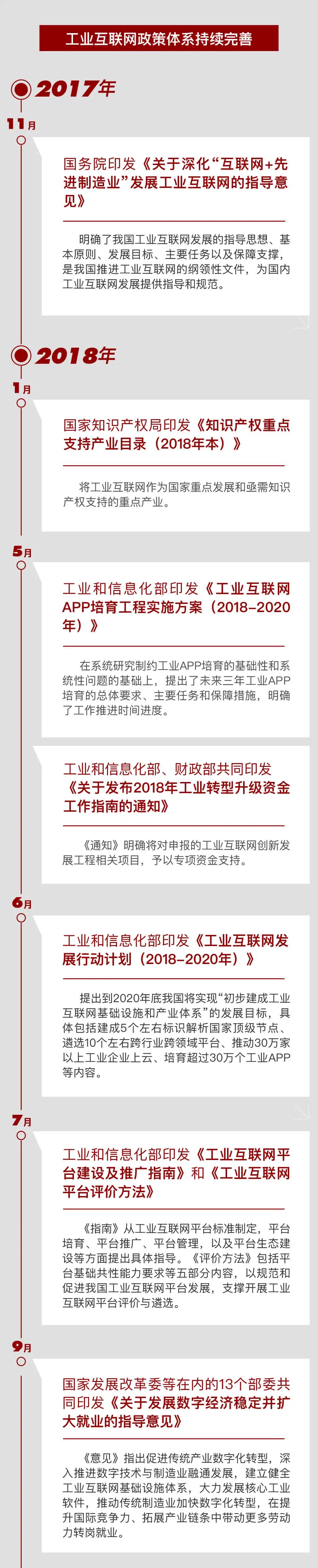 2017年以来,国务院各部委均出台相关政策文件,明确工业互联网顶层设计、行动指南,指导国内工业互联网发展方向,引领工业互联网发展走深走实。